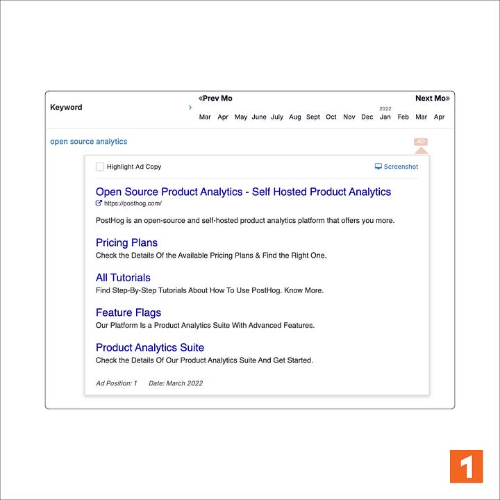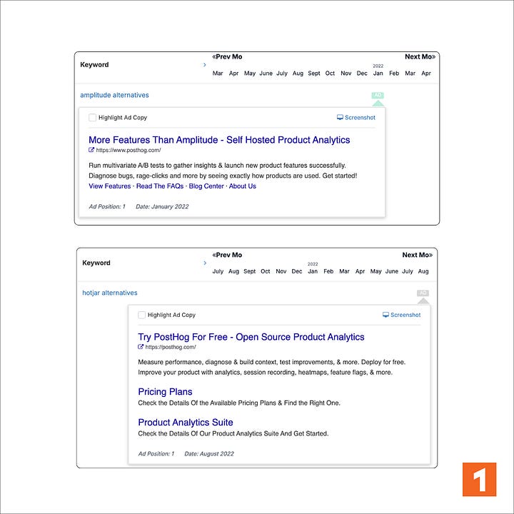 They started with campaigns targeting users searching for “open-source analytics software” and alternatives to SaaS analytics tools such as “Hotjar alternatives” and “Amplitude alternatives.”
