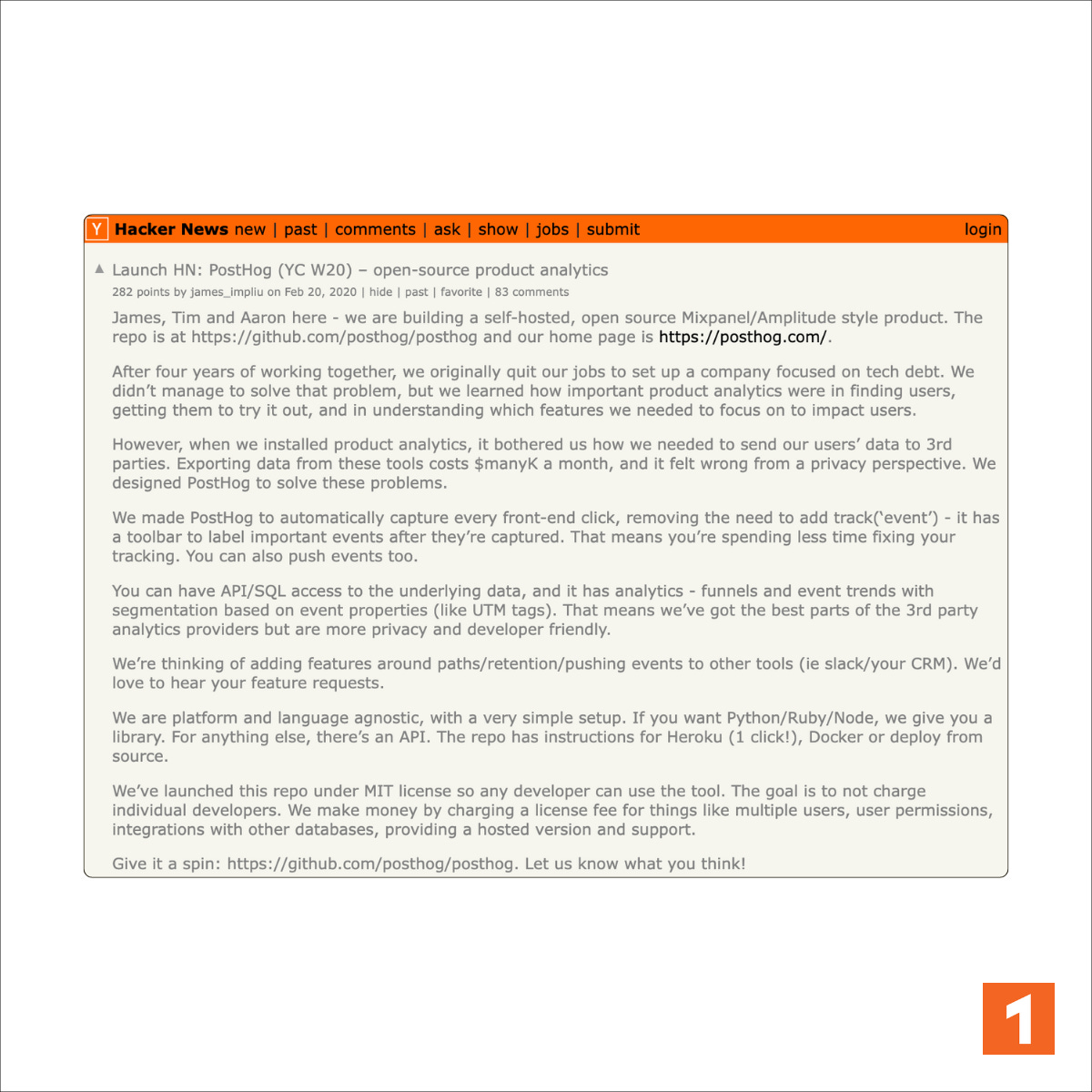 GitHub and Hacker News gave them reach, and open source helped PostHog build credibility with developers and drive adoption at scale.