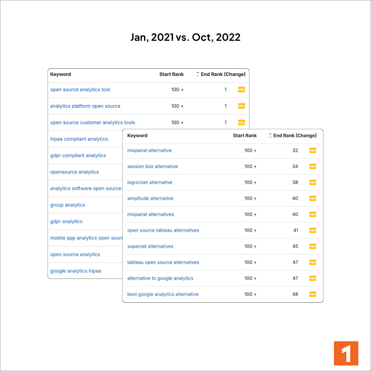By the end of 2022, PostHog was ranking for more than 500+ keywords in the top 50.